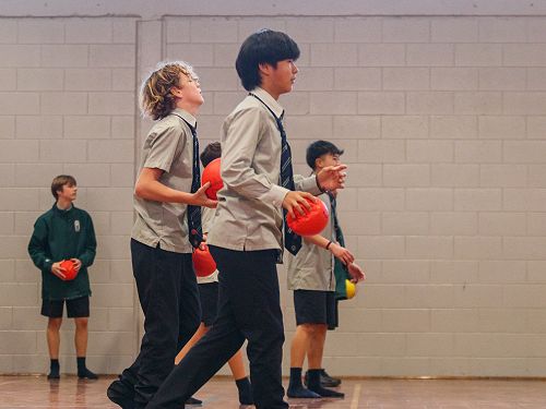 The first ‘rivalry’ match between the year 9 and 10s generated lots of excitement in the Cross Gym. Students came pouring in with the ring of the lunch bell. Hustle and bustle ensued though our leaders had it under control. They explained the rules to rapt attention, and set everyone into action with a whistle.