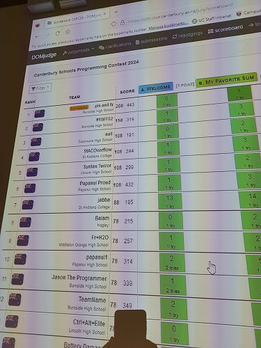Burnside High School sent fifteen teams to the annual Canterbury Schools Programming Contest, held at the University of Canterbury on Saturday 22nd June.