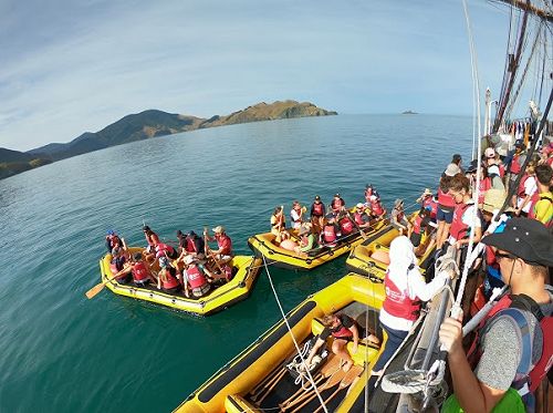 Tuia 250 was a commemoration in 2019 marking 250 years since the first onshore encounters between Māori and Pākehā in 1769. Tuia 250 celebrated Aotearoa New Zealand’s Pacific voyaging heritage and was a national opportunity to hold conversations about the past, the present and how we navigate our shared future. As part of the commemorations there was a voyage flotilla that consisted of six vessels; the Fa’afaite from Tahiti, Haunui and Ngahiraka Mai Tawhiti from Aotearoa New Zealand, the HMB Endeavour replica from Australia, and the R.Tucker Thompson and Spirit of New Zealand. During my leg of the voyage, the voyage flotilla spent a day at Ship Cove (Meretoto) where we learnt about many of the earliest interactions between Maori and Pakeha people 250 year prior. Ship Cove was actually the first place of Maori-Pakeha relations and was a popular spot with Captain Cook as he knew he would always be welcomed by the locals.