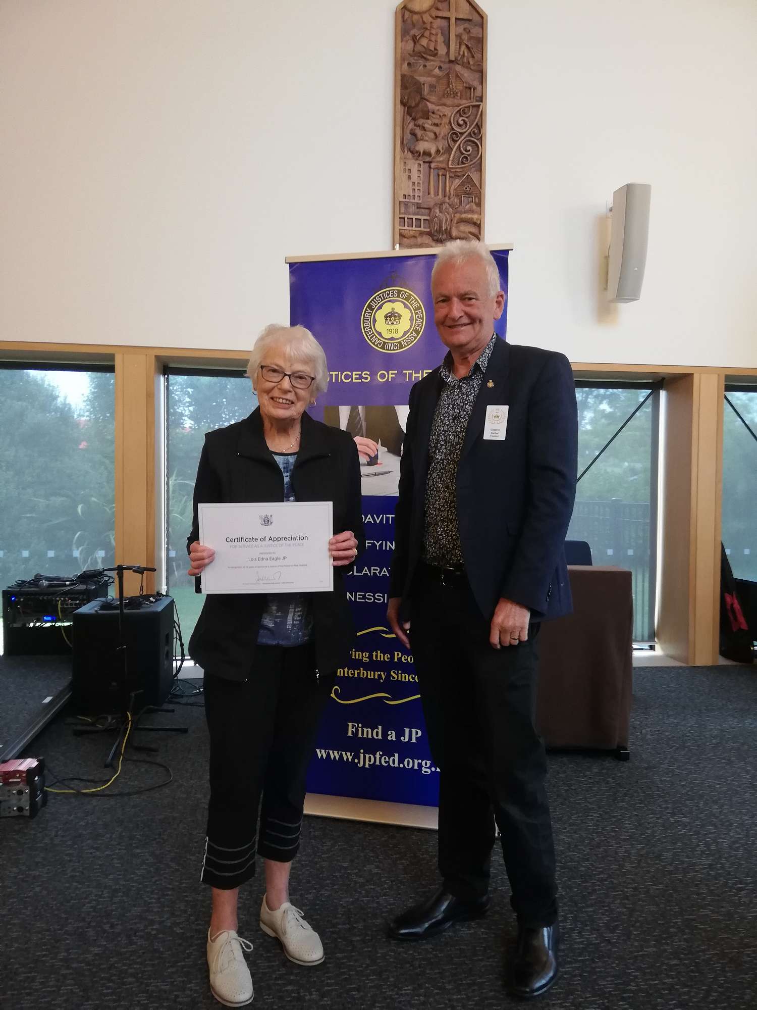 I am privileged to personally present certificates and badges to some recently retired JPs including Nigel Johnstone, June Russell, Mary Berge and Antonia Hill, along with 40 Year Long Service Certificates to Jennifer Inwood and Jan Shuttleworth both on Banks Peninsula.
