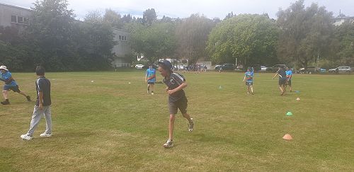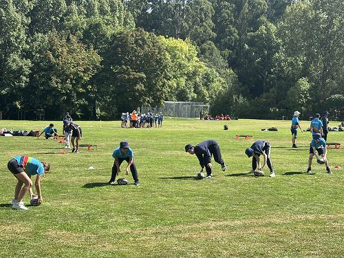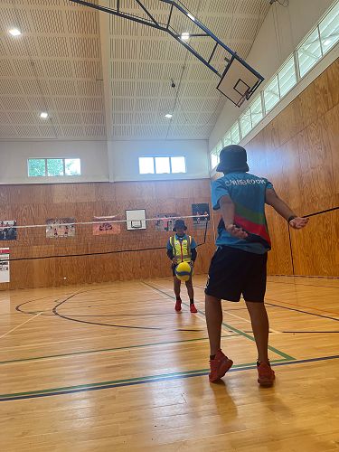 After spike ball, we moved to rugby and we all got in a big circle and each grabbed a ball then we learned how to pass. We got into four teams. It was me and Apera again with Jah-main In our team. We had to run, grab the ball, get a try and then run back and place the ball, then get back to our line. We were pretty fast at that until Apera dropped the ball and set us back. But we carried on. Then we played an actual game again. We played well and ended up winning.