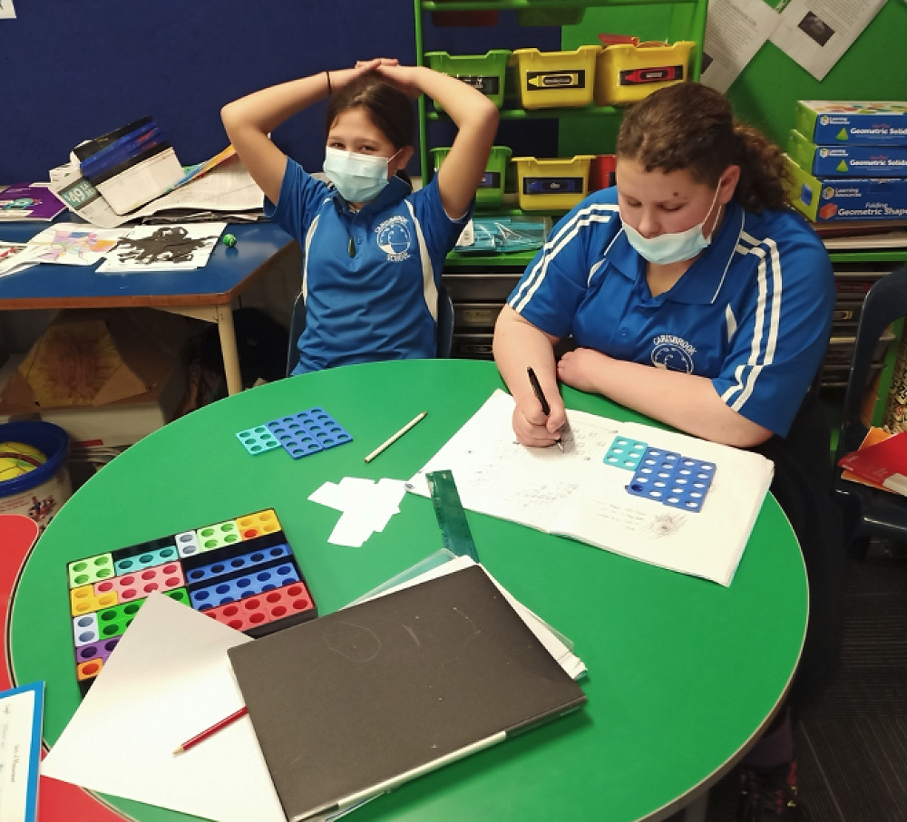 Aleiya and Emma working on using the Numicon equipment to solve questions.