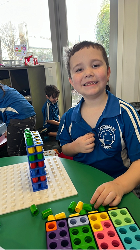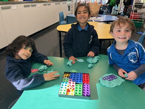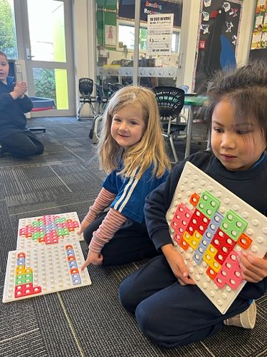 While the teachers have been working with small groups, the Tamariki have been enjoying matching the Numicon shapes on the peg boards and counting each shape, making Numicon sandwiches by using the pegs and then counting how many pegs have been used.