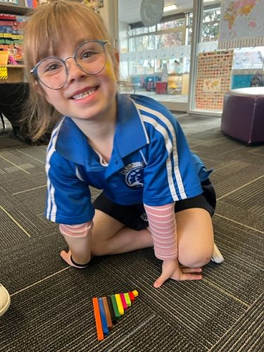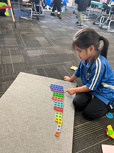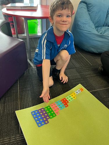 Shayde: ‘I like learning about numbers and my favourite Numicon numbers are 1 and 2. 1 is orange and 2 is light blue’.Harper: ‘ I like making numbers bigger than 10 using the Numicon shapes.' Kairan: ‘ I like making Numicon towers and then counting the numbers.' Sariah: ‘I like putting the Numicon shapes in order’.
