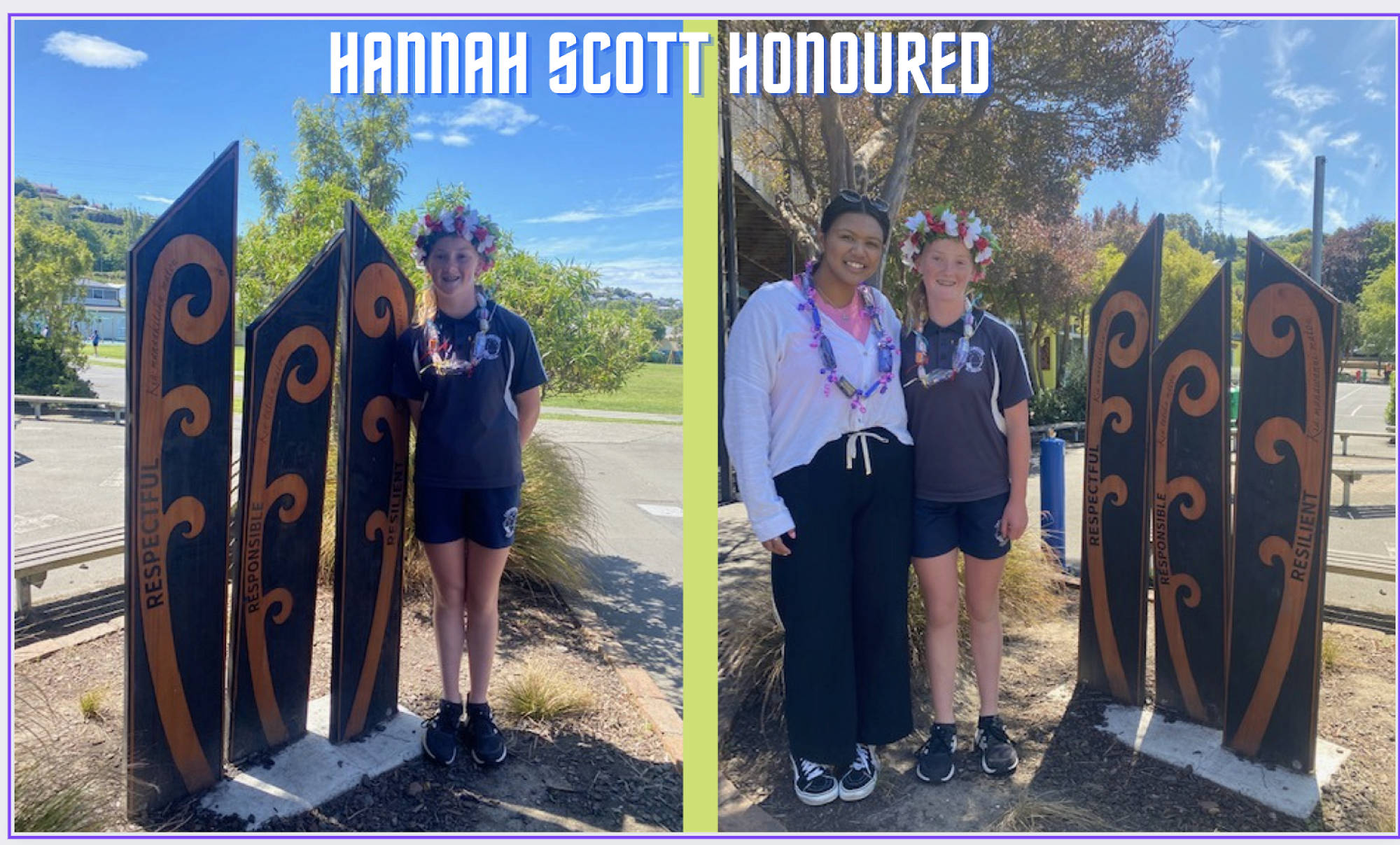 Hannah Scott was awarded the overall Main Freight General Excellence award at our Final Assembly & Year 8 Graduation on Thursday. Along with her award, Hannah was gifted an Ei Katu from Ana to acknowledge her great achievements, positive attitude and constant support of others. An Ei Katu is a traditional Cook Island headpiece which represents kindness, belonging and the importance of connection. Ana was given this Ei Katu by her Grandmother as a child and has chosen to gift this to Hannah to acknowledge her. What an incredibly proud moment for our school.