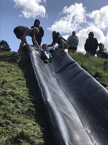 The next day we all enjoyed archery, frisbee golf, conquering the confidence course and then whizzing down the flying fox from a great height! After that, the weather cleared up enough for us to have a go on the fastest water slide around!