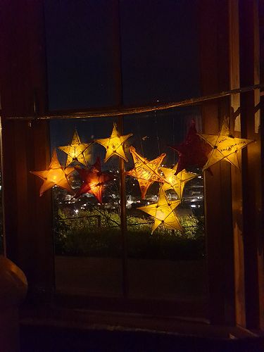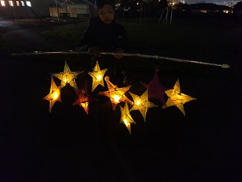 They created Matariki star lanterns, which were inspired by the Mid Winter Festival in Dunedin. Mrs Kutia took nine of the students' stars (each representing a different Matariki star) and they have been on display at the Mamas Donut store for the past week.