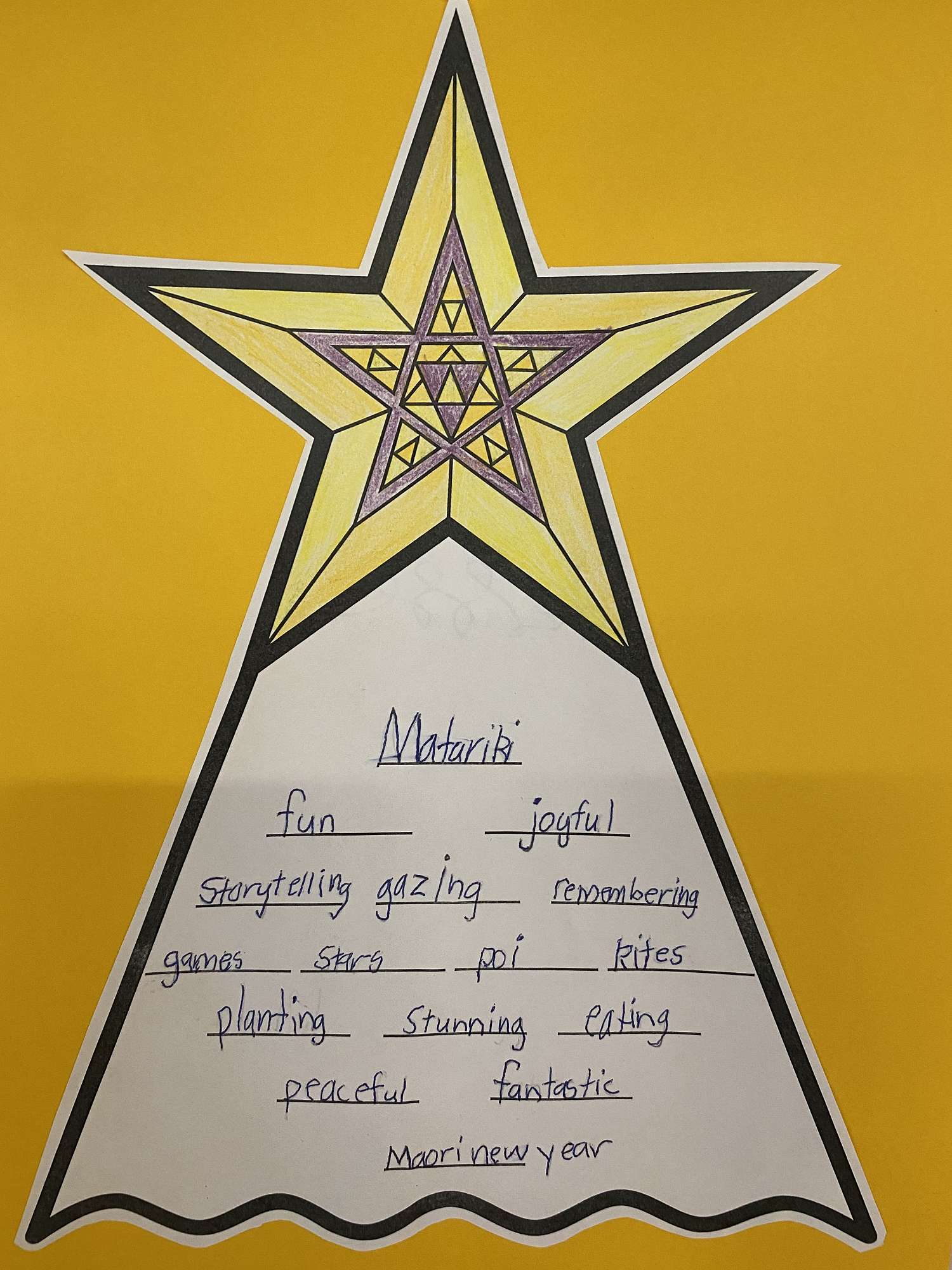 Welcome back to Term 3. During our holiday break our Matariki stars shone for the start of Maori New Year. It was celebrated from the 13th- 17th July. For the first couple of weeks at school we have been learning about Matariki in our classes.