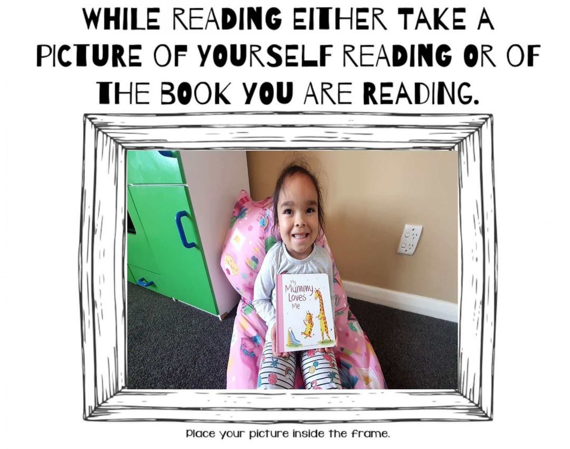 Nevaeh's picture is her holding her favourite book at home, we had to take a picture on Seesaw of ourselves with our favourite book.