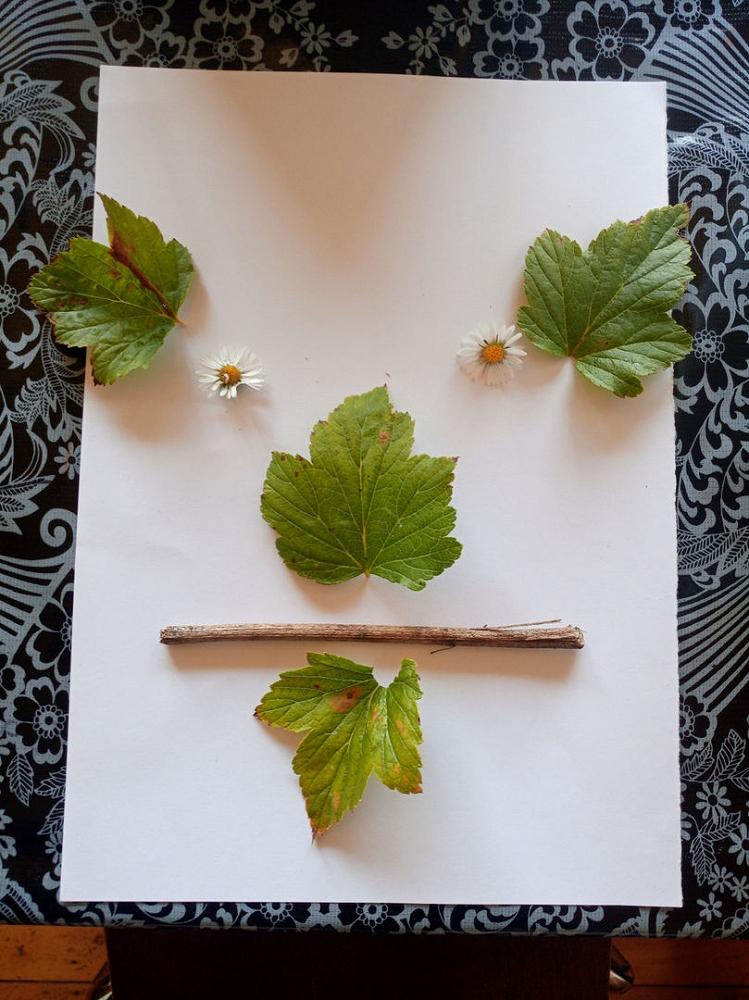 We get a daily 'Challenge' assigned to us amongst other things, and one of our challenges was to create a piece of art using things we find outside in nature. Finley made this face.