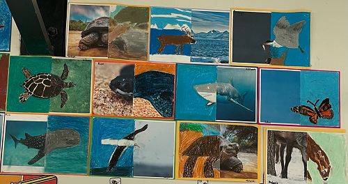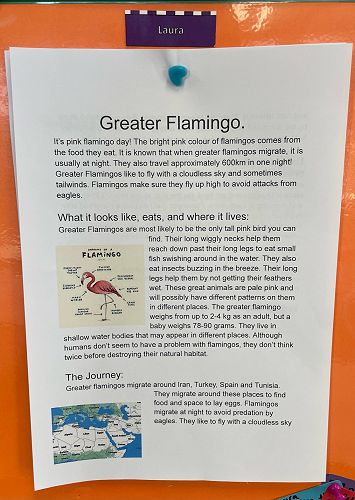 We have been incorporating our topic this term, Migration, into our literacy programme. We have been reading plenty of books and articles about animals that migrate, as well as doing art, and writing our own formal reports on our favourite migrating animal. Here are some photos of some of our art and report writing!