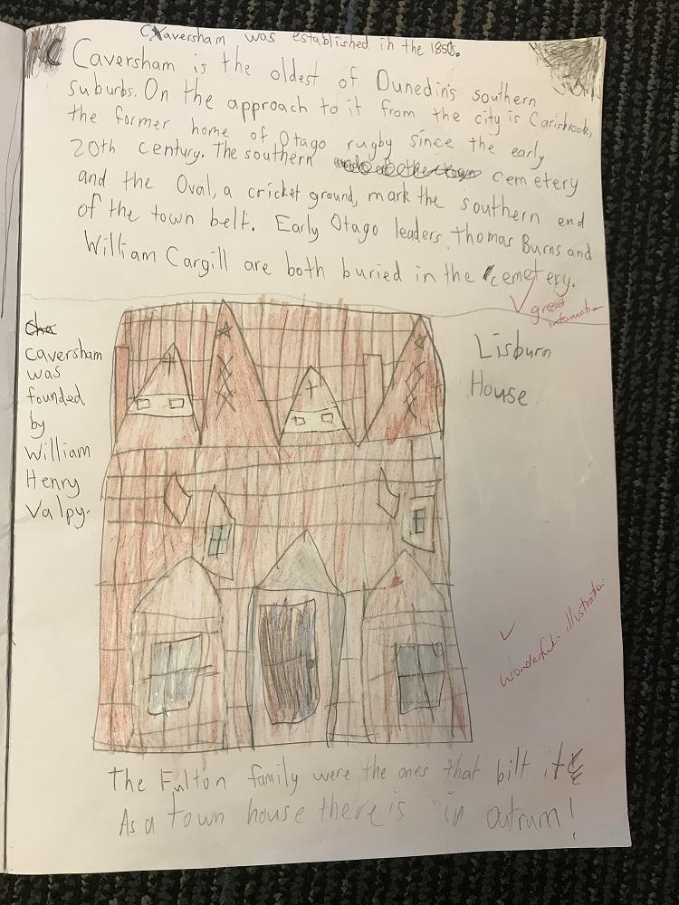 Each class has enjoyed learning more about their local community and have realised that Caversham has a lot of interesting history. Below is some research and drawings of Lisburn House completed by Scarlet Bagge and Eva Tangimetua,