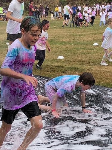 Wow!! Our Colour run was so much fun. Thank you everyone for coming along - we had current students, past students, parents, and staff running around our fun course. Under parachutes, jumping through tyres and cruising down the slip and slide they went. Lots of laughter and a great community feel!