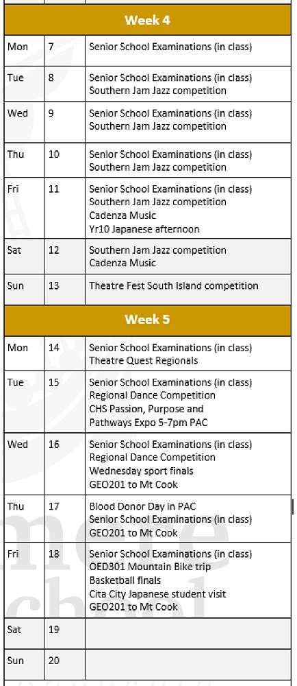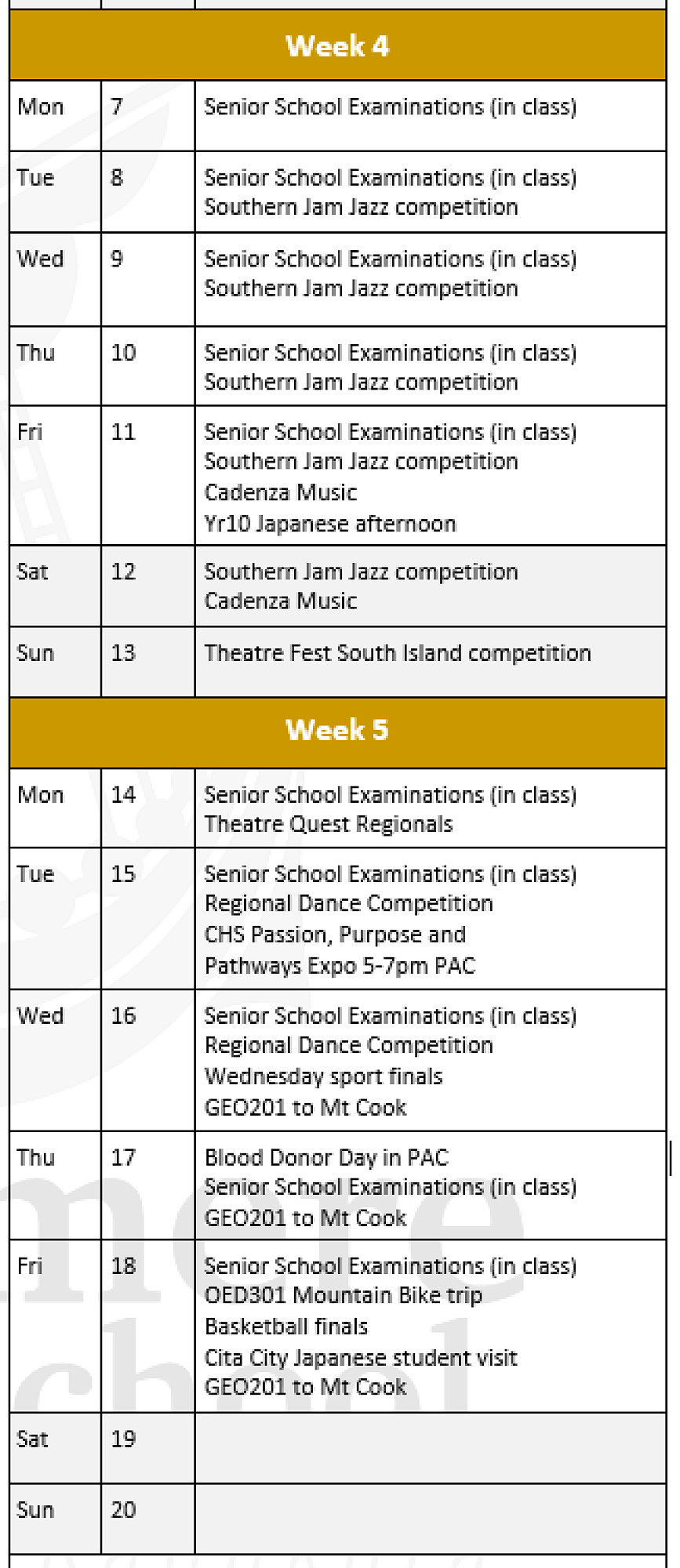 As we move into the next fortnight the key focus for our seniors will be their subject examinations. It is important that students understand when their exams will be and seek any clarification needed from their teachers. While these examinations are being held during class time they will still be under the same expectations and guidelines as the NCEA examinations at the end of the academic year.