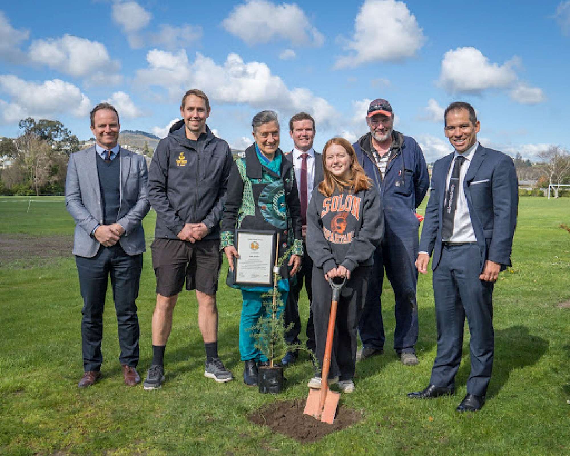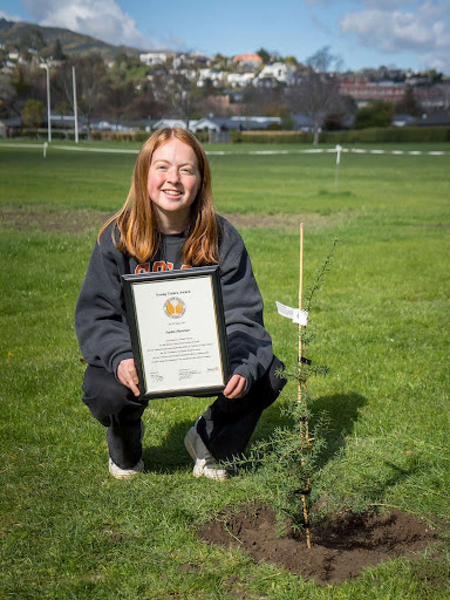 Part of her award included a Totara tree, which Sophie has donated to the school to be planted and enjoyed by future generations. Gifting this taonga to our school exemplifies Sophie's 'service before self' ethos and continues a legacy of citizenship through service in our school community. Alice Tiso (Head Girl in 2019) is a past recipient of the Young Totara Award and Sophie's tree is planted next to Alice's near our school's orchard.