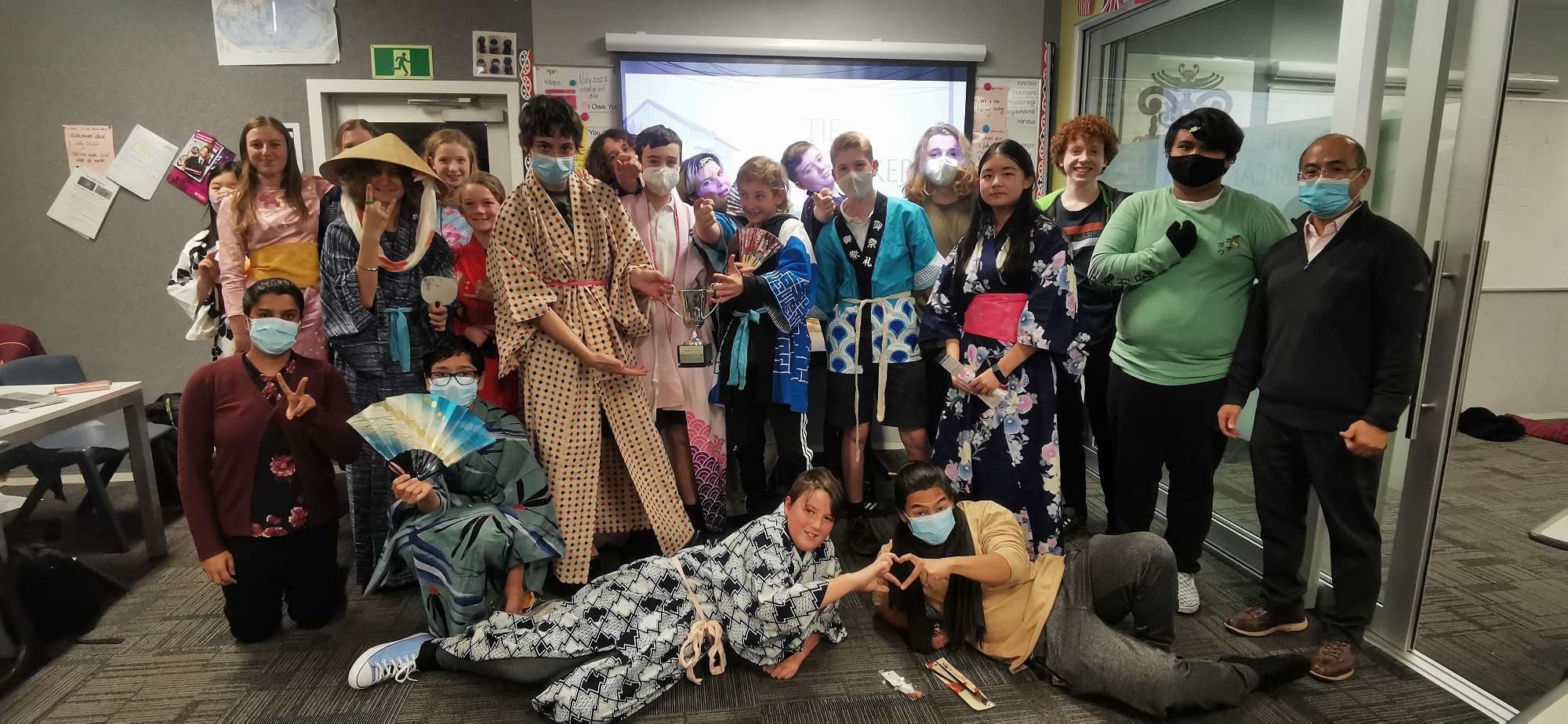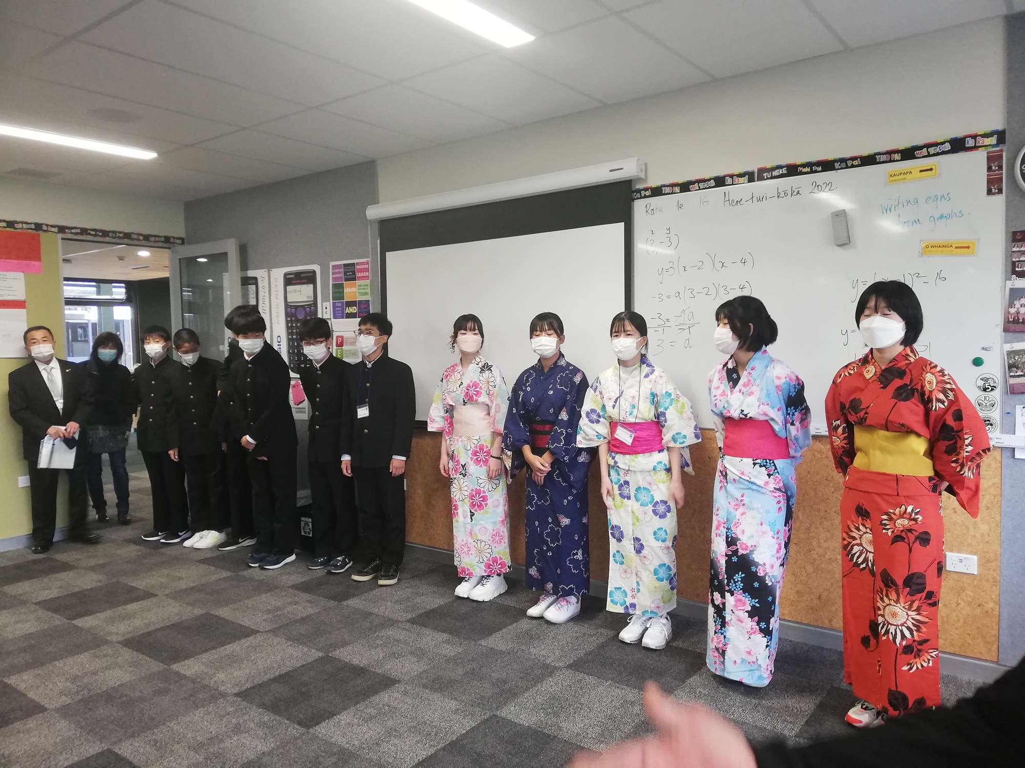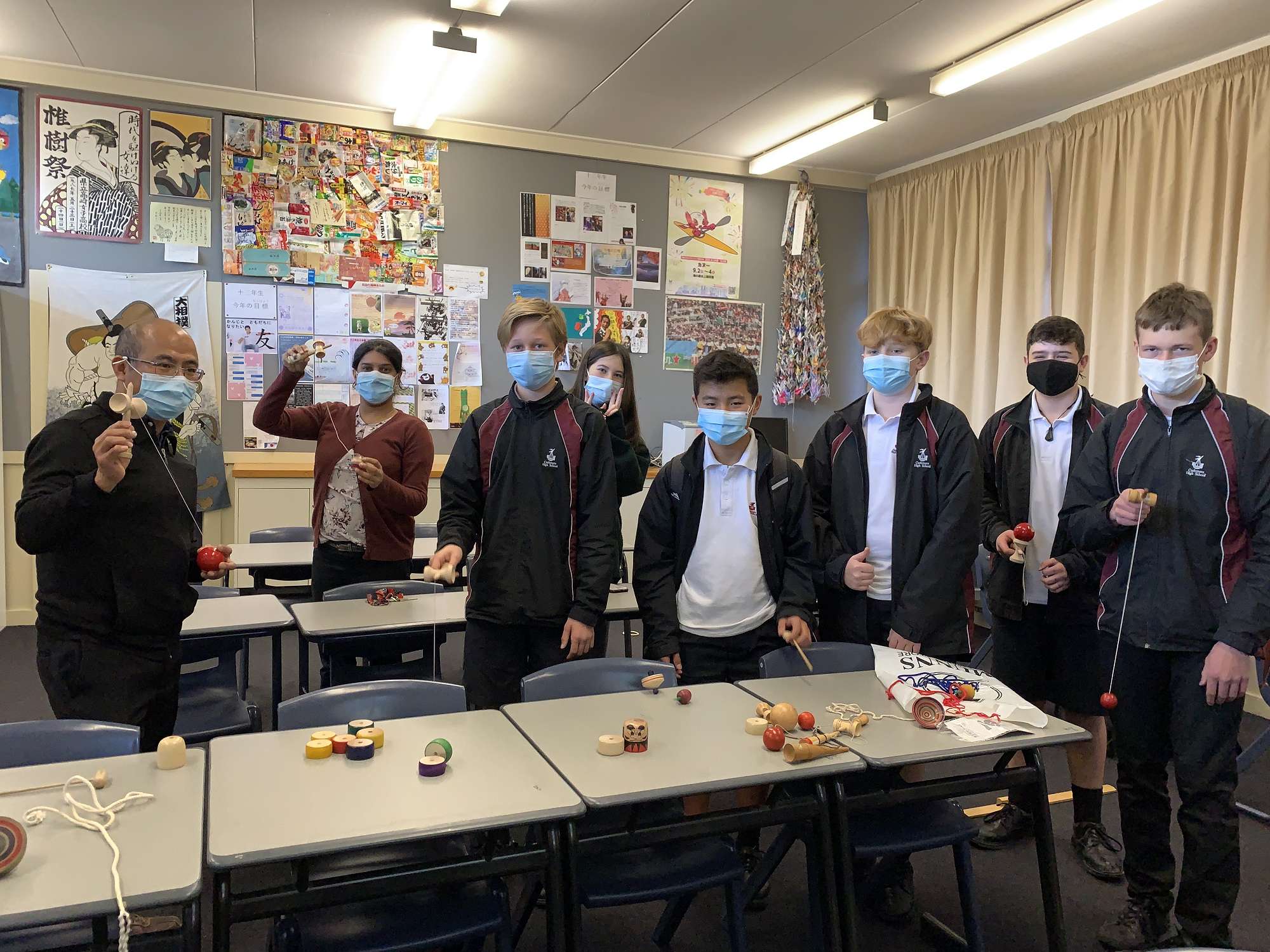 In August twelve students and two teachers from five middle schools in Chita City, Japan, visited Christchurch for the first time since 2019. Students in the junior Japanese classes hosted them during their five day stay. Two of our Year 9 classes enjoyed conversations together and tried a traditional Japanese dance with them.