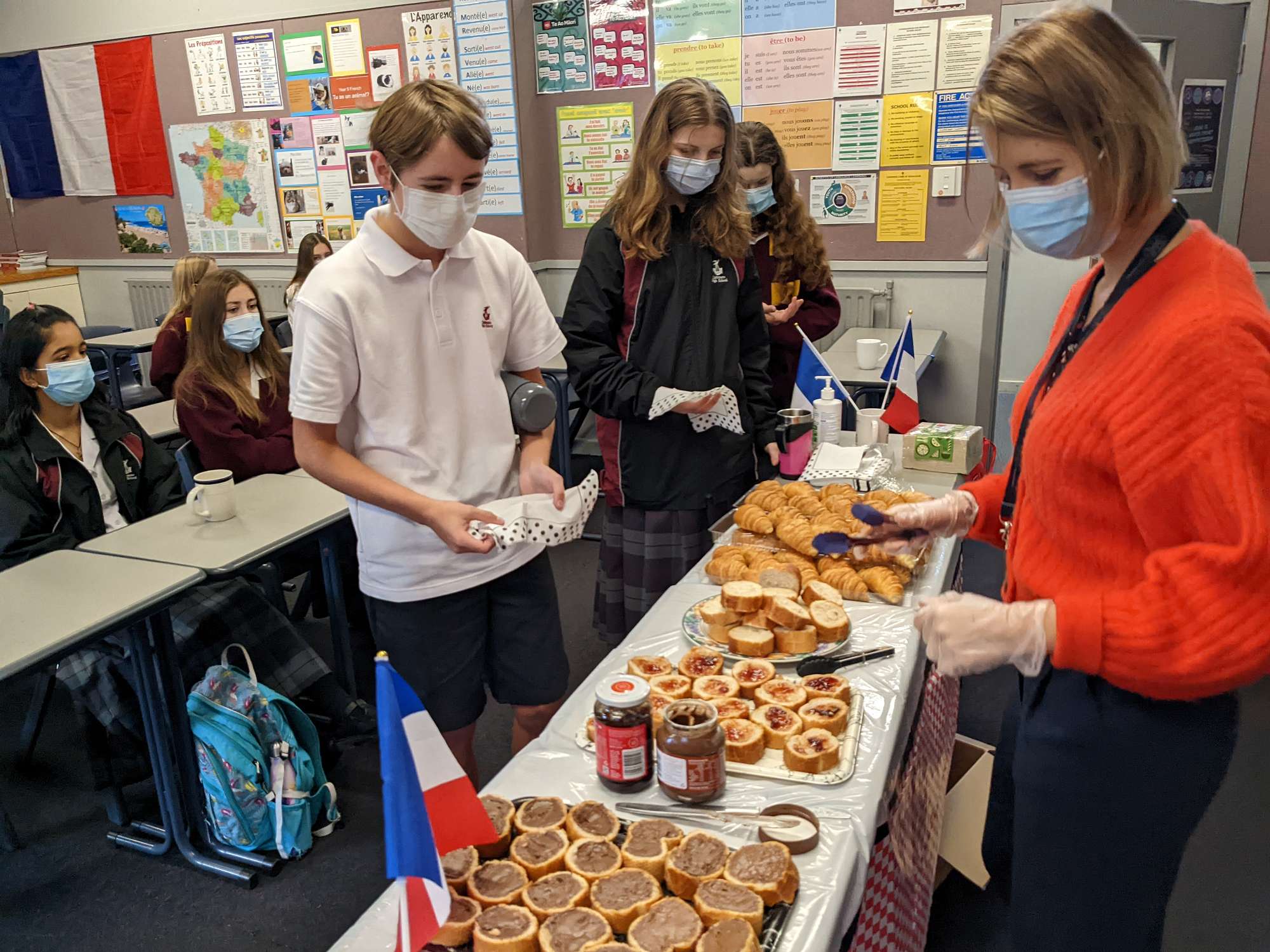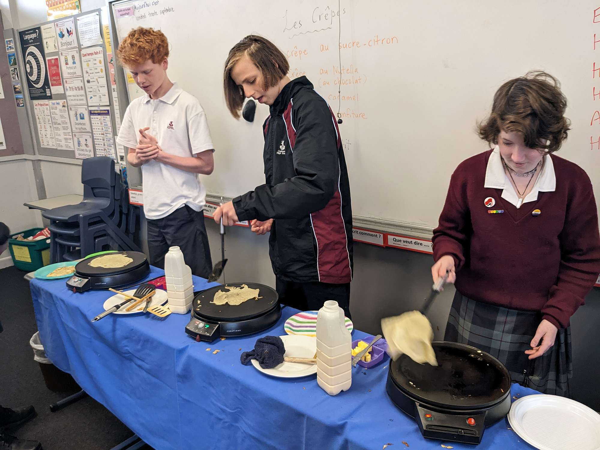 Many of our French classes have made crêpes (French pancakes) in class - topped with lemon and sugar, jam or Nutella! Year 9 also enjoyed a French breakfast of croissants, pains au chocolat and hot chocolate. Year 10 are booked for a three course French meal at Sign of the Kiwi and Year 11 and 12 are planning a shared lunch with French food. Year 13 French visited a local café to replicate French café culture and practise their conversational French.