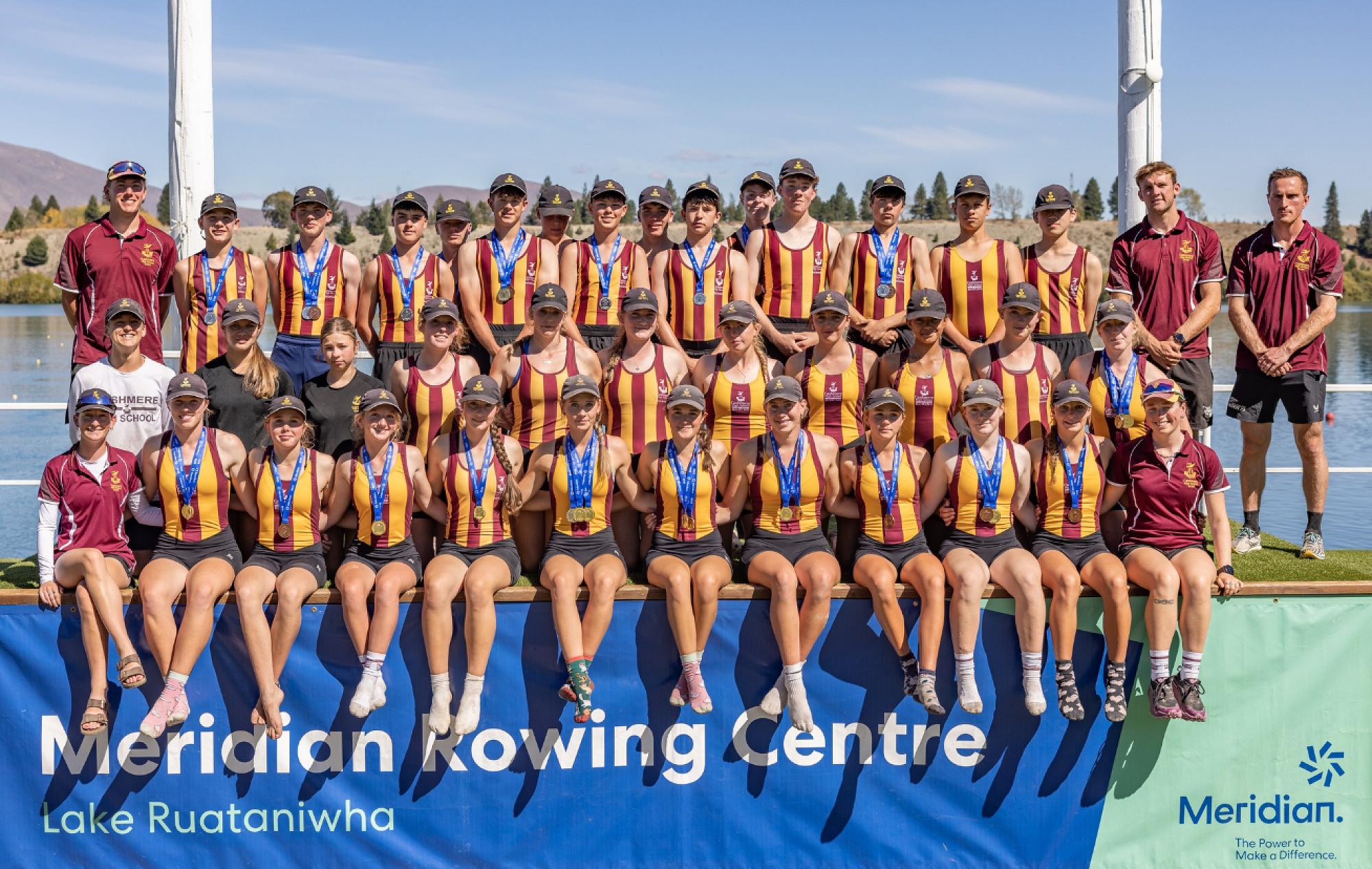 A school record was set with four South Island titles, marking a historic achievement. The team secured the Girls U17 (GU17) Single and Quad titles for the first time ever, successfully defended the GU18 Quad title, and reclaimed the GU15 Double title, last won in 2022.