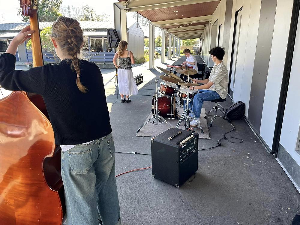 With the improvement of the weather the Music Quad was able to start up our lunchtime concert series. Spearheaded by Mr. Service, The Student Council and the PAC Tech Class, Bands, Jazz Combos and ensembles entertained lunchtime audiences all Term 3.