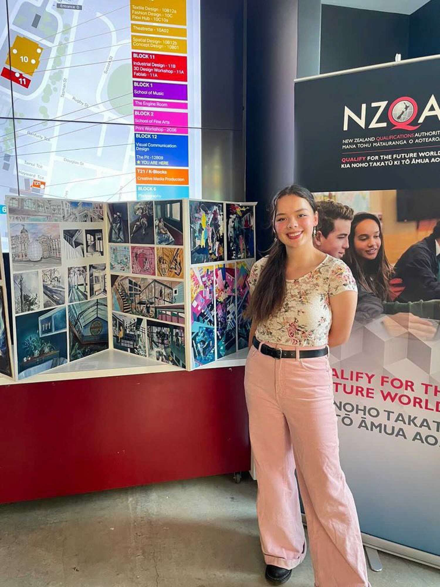 Cashmere High School students continue to achieve many accolades both within their curriculum projects and co-curricular. Emily Blennerhassett achieved excellence with her folio, pictured here at The NZQA Top Art Exhibition, a coveted achievement in the visual arts. Well done Emily!