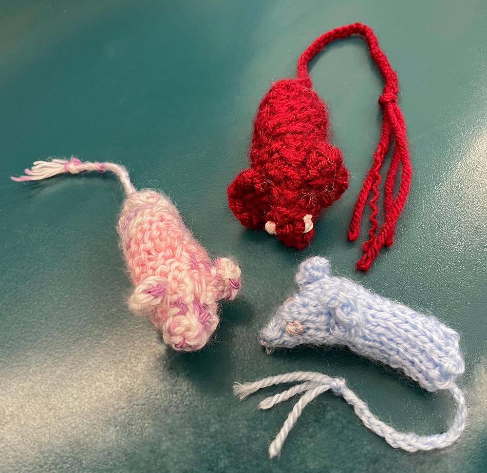 Got under way last term and is a hub of activity each Monday at lunchtime in D8 with lots of different projects on the go. There will be some very spoilt SPCA kittens and cats enjoying playing with these fabulous mice knitted by Phoebe.