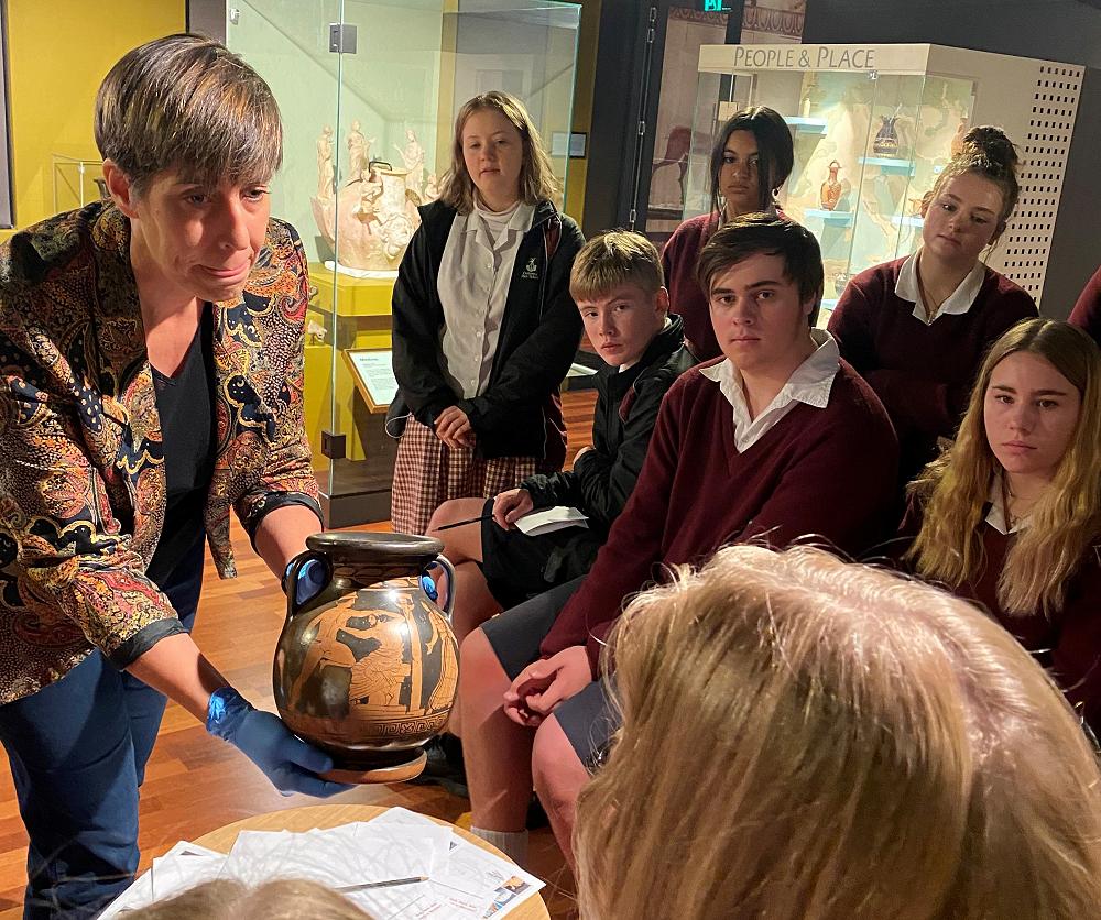 On Thursday the 15th of April both of the Year 12 Classics classes visited the Teece Museum in the centre of town. Here we saw many Greek artefacts and vases which were carefully curated by the UC Classics Department. There, a woman named Teri helped explain to us the history and myth behind these amazing relics as well as provide us with a broader and more hands-on experience to help us with our first internal assessment. She talked us through the different images on the vases, had us look for different sculptures and gave us a deeper understanding of ancient Greek life. Overall, it was a great experience and was an awesome way to end the term.
