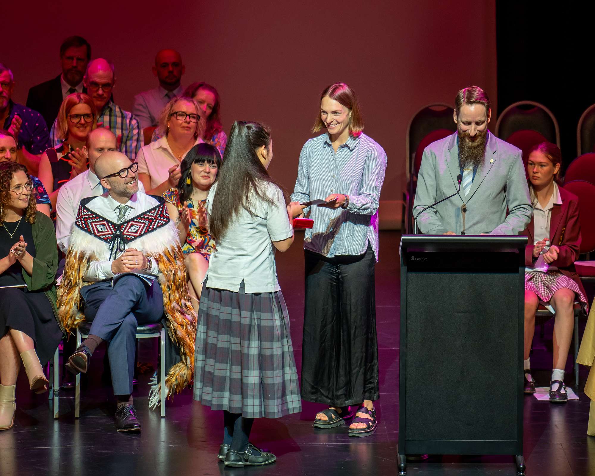 Grant Bartley, with 20 years of service, has been the cornerstone of our music department. From his exceptional skills as a conductor and accompanist to leading international music tours, he has enriched the lives of students and staff with his musical brilliance. Michelle Dalrymple, also marking 20 years, has transformed mathematics and statistics education, earning national recognition and inspiring her faculty with her leadership and expertise. Karen Kennedy, after an incredible 30 years, has encouraged a passsion for design and architecture in her students while fostering a warm, supportive faculty culture. Finally, our beloved Whaea Miriama Setterington has been the heart of Cashmere High School for an extraordinary 40 years. Her wisdom, care, and dedication to tikanga Māori have nurtured generations of students and staff alike. We were privileged to have Whaea Mereana Selby, a former CHS staff member and CEO of Te Wānanga o Raukawa attend our long service celebration to speak and present Whaea Miriama with tāonga to acknowledge her service.