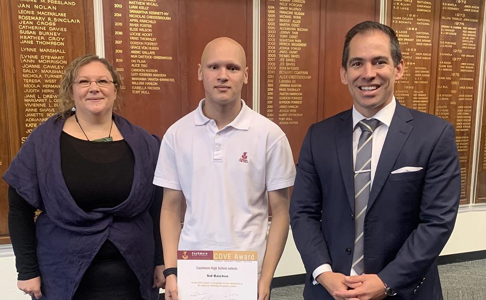 Over the last weeks we had the pleasure of awarding 3 COVE Awards to 3 outstanding students. Their commitment to our school values has not gone unnoticed, and I wanted to congratulate them for consistently embodying the qualities of a Cashmere student. They have inspired and positively impacted the people around them with their enthusiastic attitude and their willingness to lend a helping hand. I look forward to watching their continued success. Congratulations to Kahutaiki Calman, Elise Brown and Sid Baichoo!