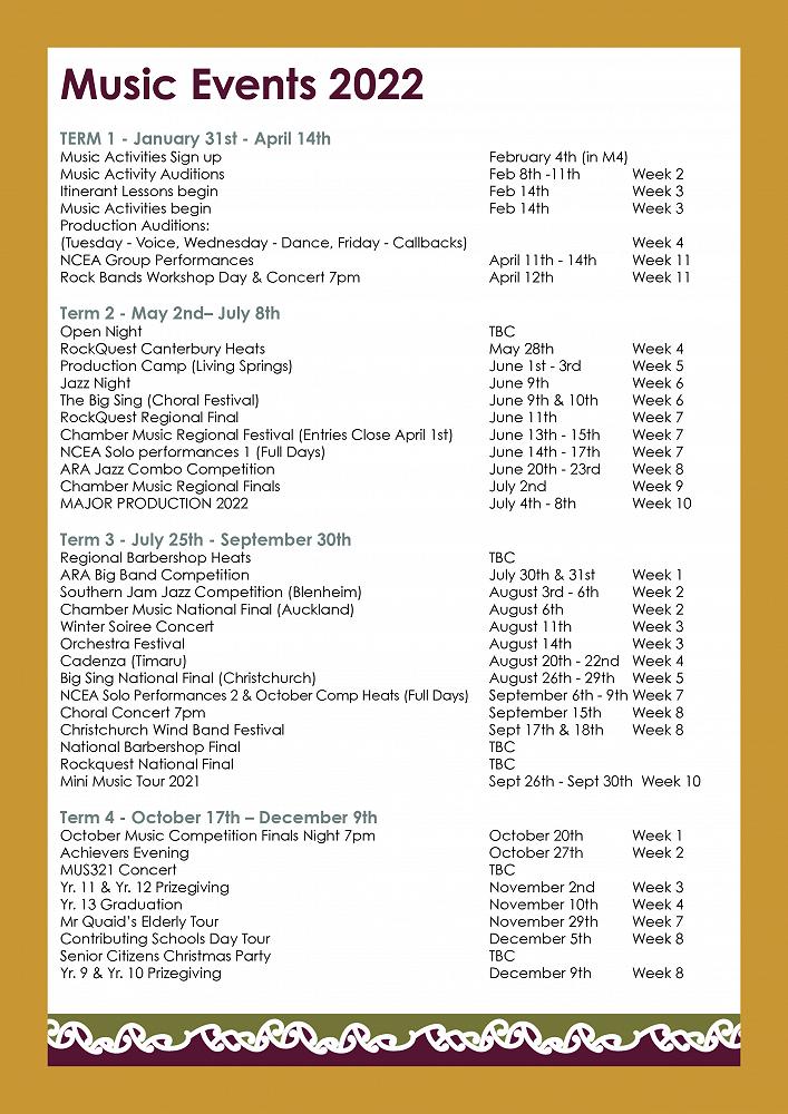 Music activities sign up started in Week one with auditions Week 2 & activities beginning in Week 3.