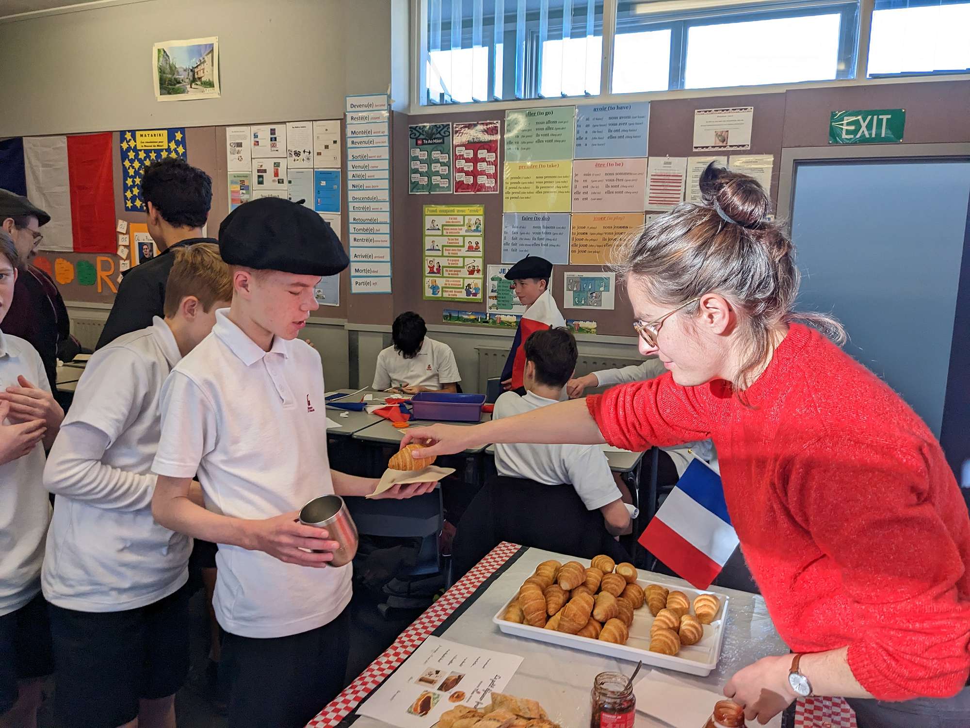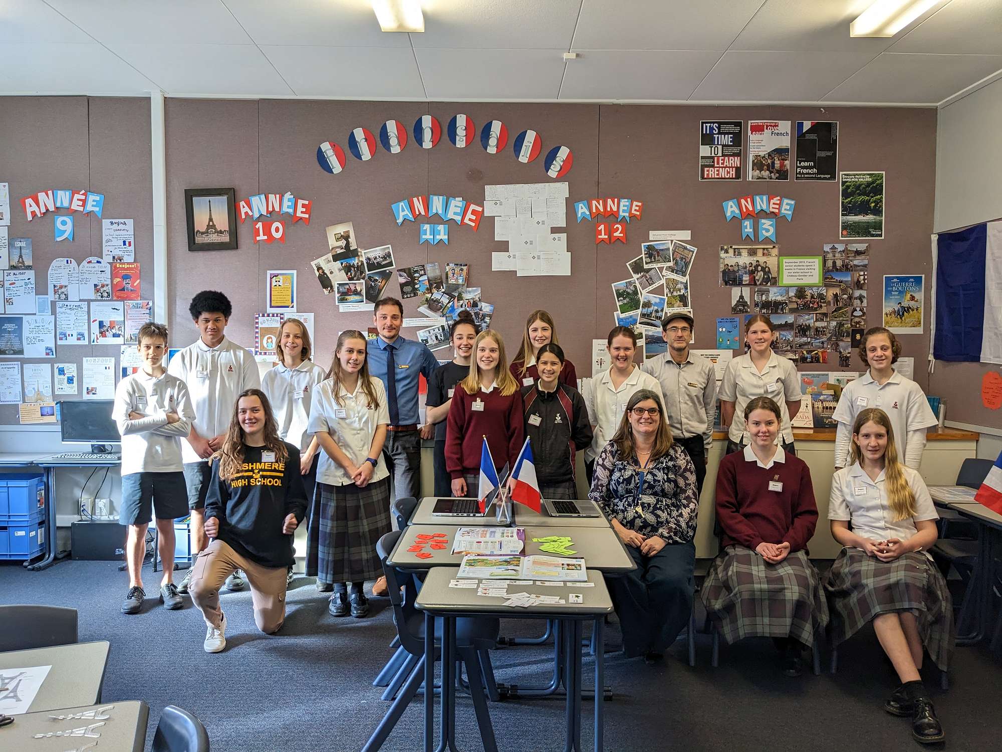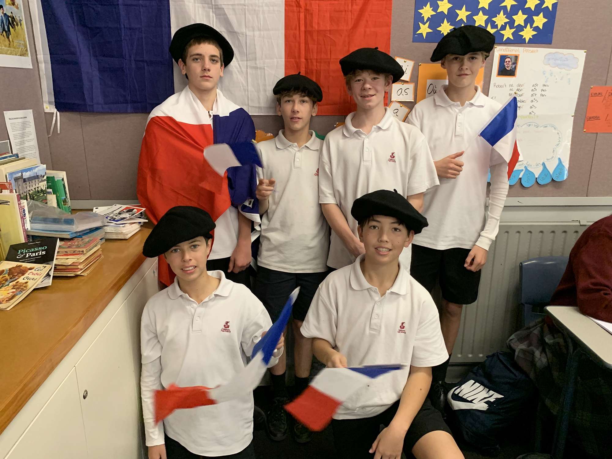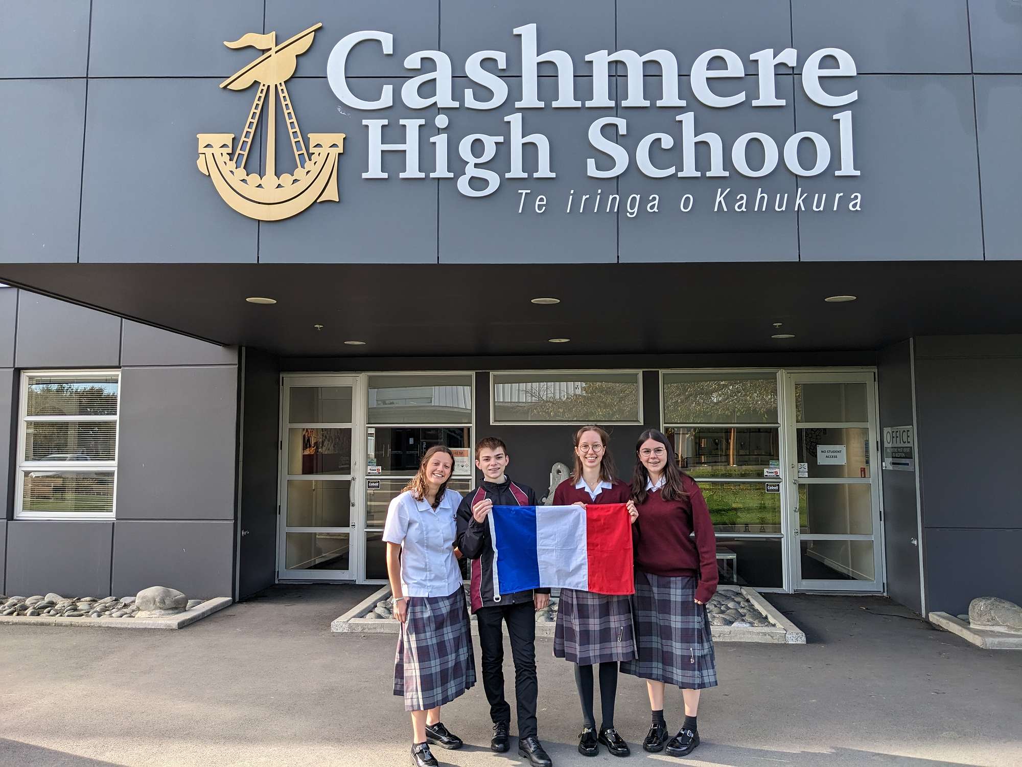 This term we welcome 4 students - Roman, Camille, Léna and Eline - from Lycée St Michel, our sister school in France. They are spending 3 months in Christchurch, hosted by Cashmere French students - Ryan Johnson, Mila Peeti, Hazel Bown and Isabelle Muller-Wild, who will spend 3 months in France, leaving in December. For the students from France it is a new experience to wear a school uniform and bring a packed lunch to school. In France there is no school uniform and most students eat a 3 course lunch at the school canteen.