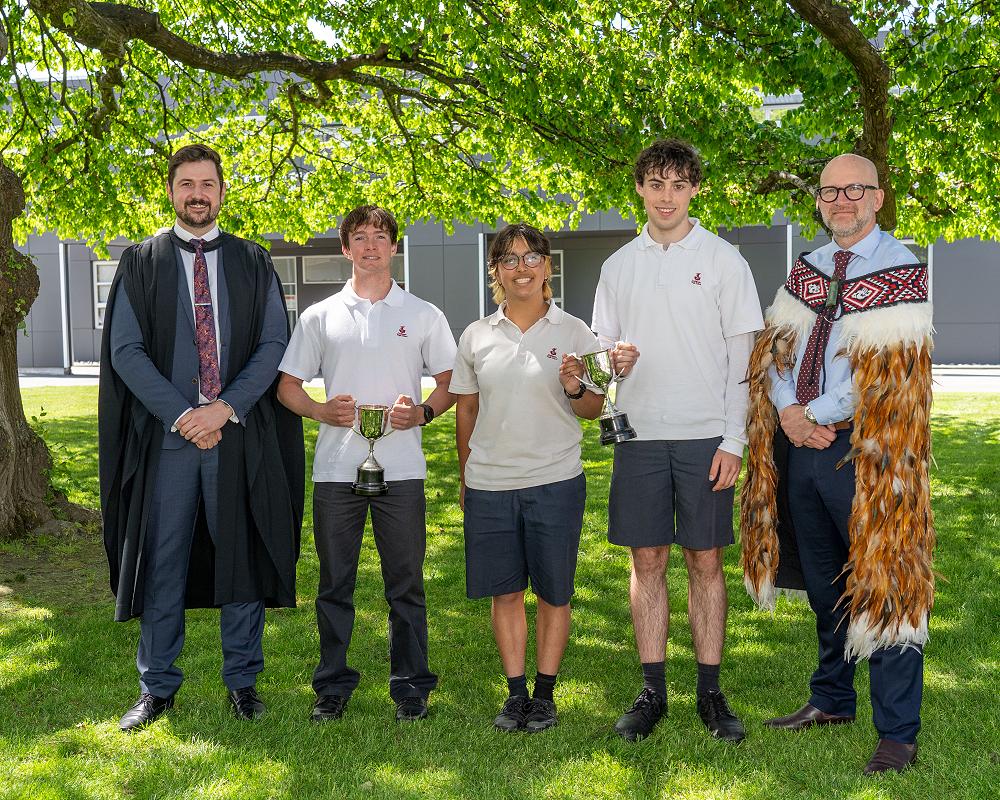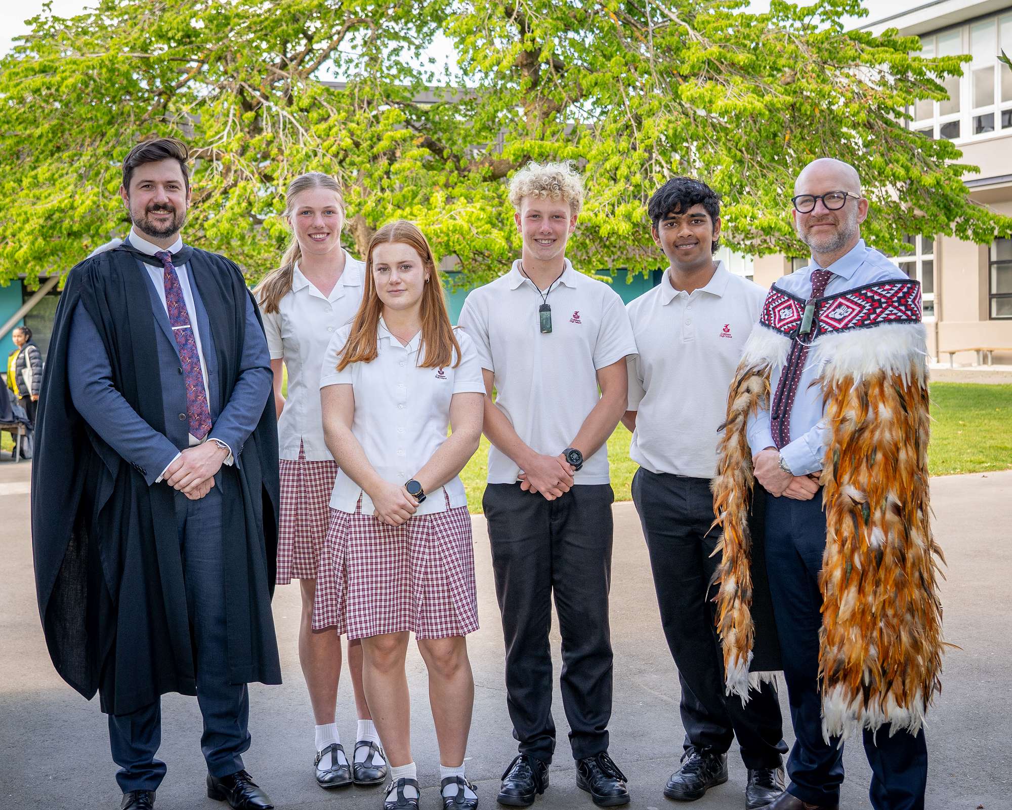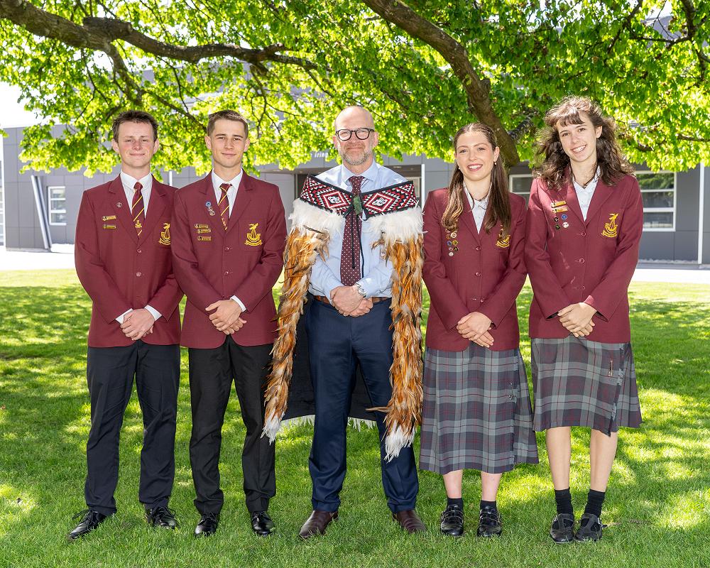Congratulations to our Head Students for 2026 - a well-deserved recognition of their leadership and dedication to the Cashmere community. From left to right: Mr N Milward (Head of School Year 13, 2026), Zoe Clarke (Deputy Head Student), Charlotte Clatworthy (Head Student), Max Eadie-Lilley (Head Student), Utkarsh Singh (Deputy Head Student), Mr J Stradwick (Principal).
