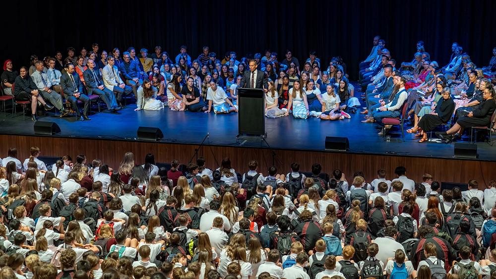 Welcoming a new year group to the kura during the Year 9 Powhiri. It is great to see so many of these students getting involved in the Creative and Performing Arts Faculty in 2024.