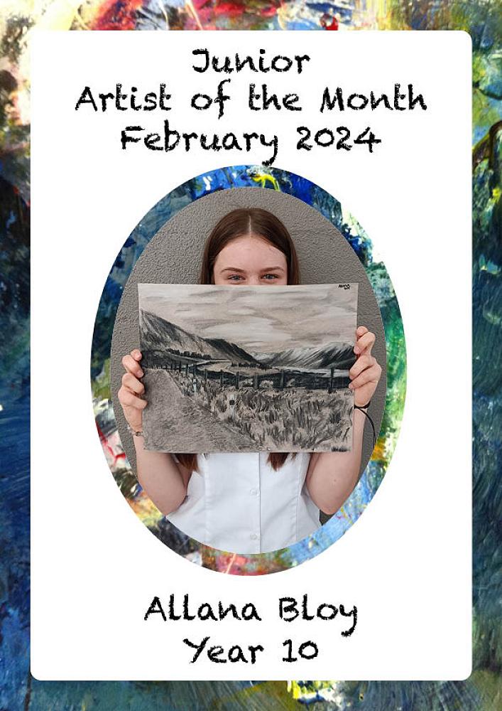 Each month an Artist of the month is rewarded for dedication to their creativity. Posted to the Art department & school social media and you can also view in the Awards and Accolades section of Arts Faculty on the school website https://www.cashmere.school.nz/faculties-1/art-subject-pages/awards-and-accolades