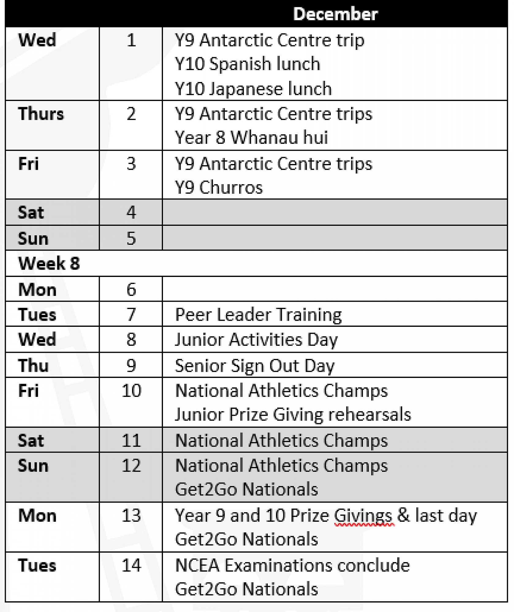 On the 17th November we held our Year 11 and Year 12 Prizegivings and on the 9th November we held Te Tū o Kahukura (Māori Prizgiving). Congratulations to all our senior students, but particularly our award winners. A special thanks to our musicians who performed brilliantly throughout all the prizegivings.