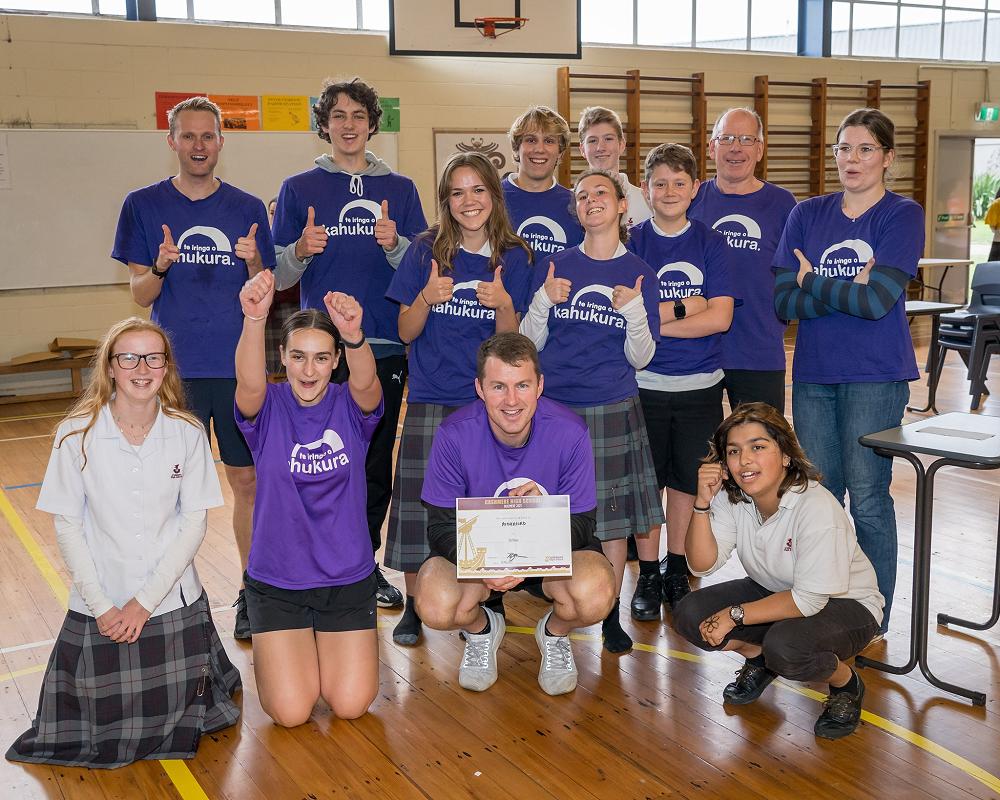 3rd place Kārearea: Hamish Sherratt, Max Groer, James Wright, Henry Lovegrove, Mya Bennett, Siobhan Maclennan, Cara Reid, Orla Dunlop