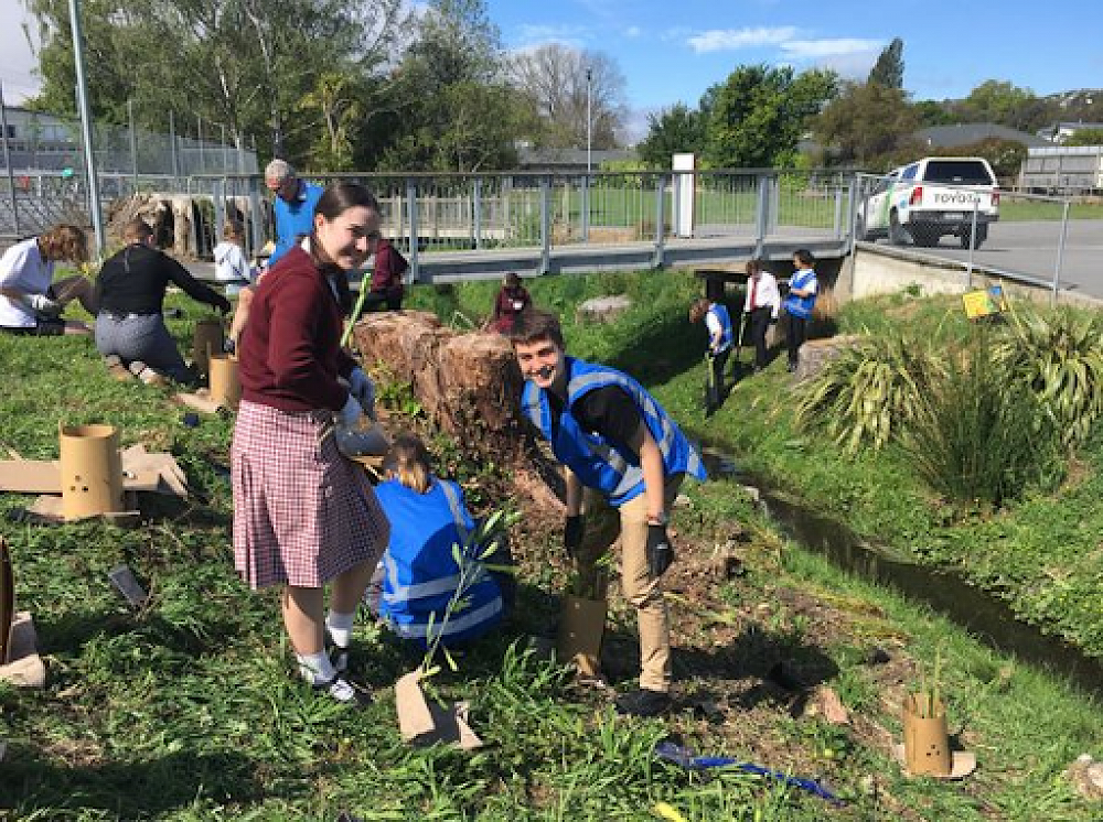 Fifty-five students and staff gave their time after school a couple of weeks ago to help plant 175 native seedlings along our Waimokihi stream bank to increase the biodiversity within our school habitats and protect our waterways.
