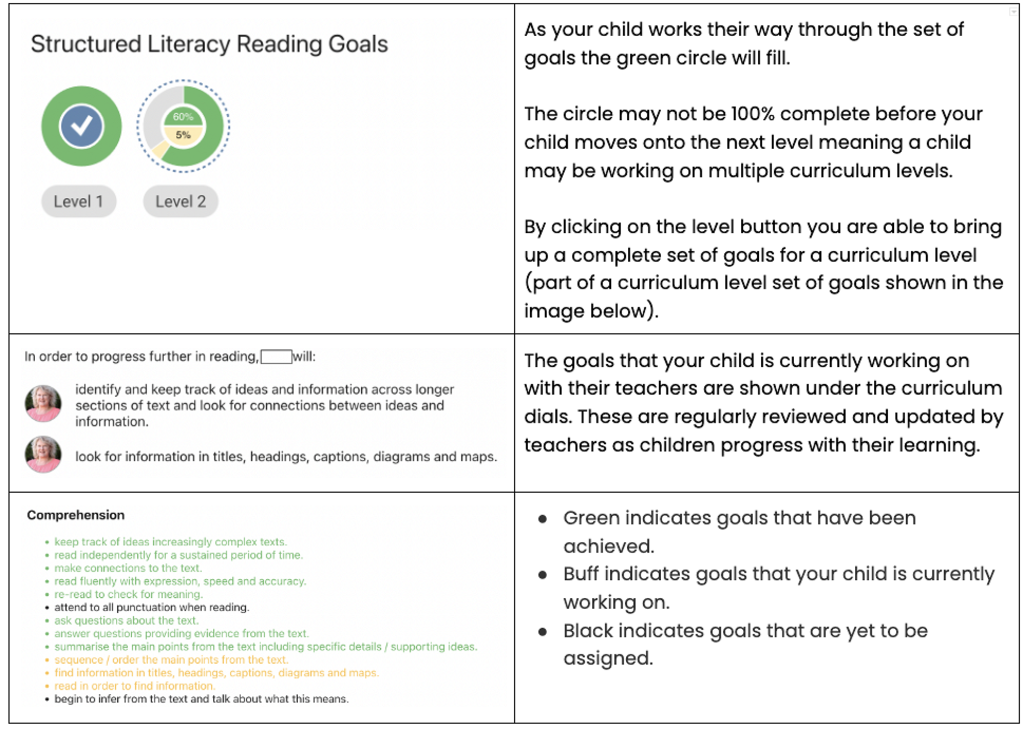 You will see our previous reading and writing reports on your child’s HERO page alongside two new sets of goals. This is so that the previous record of progress and achievement remains visible. This may not apply to your child if they started school in T2 2022.