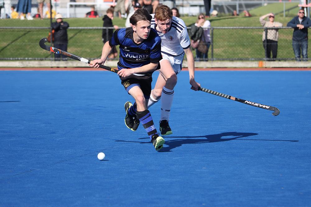 That quarter-final was a torrid, slightly niggly affair. At 1-0 up after a fast start, Burnside was awarded a penalty. A great save from Jesse Jones in goal saw us score shortly after and largely maintain control of the match, finishing up 3-0. This saw us playing on our favoured service of artificial turf where we comfortably defeated Lincoln High School 3-0 to earn a spot in the final against Hutt Valley.