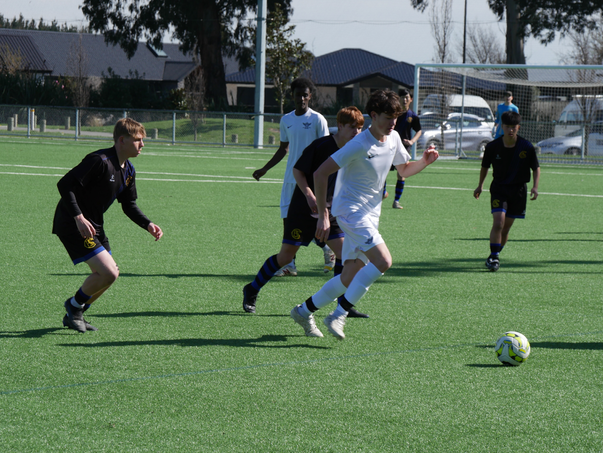 On a perfect turf with no wind out at Rolleston, we even had the Emirates Dreamliner flyover, for the final. After another good start by CBHS, Hutt Valley's high press had us under some pressure to close out a goalless first half. Despite creating several half chances, we were unable to take the lead, and despite being pinned back in our half, we still looked defensively comfortable with our stable back four of Luca Greasley, captain Jong Lee, Will MacKay and Eben Van Wyk. The second half began apace with Hutt Valley continuing their high press. More availability in midfield from Lua Otaki, Caden Goodmanson, Oli Williams, and Elliot Hallmark saw us able to play through Hutt Valley's press more effectively, eventually reducing them to largely walking pace as they ran out of energy and we moved the ball more quickly.