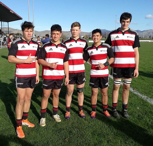 Pictured L-R - Keegan McGregor, Clayden Paranihi, Ollie Lewis, Max Hughes, Jamie Hannah who played vs Chiefs in Blenheim during the camp, the Crusaders Junior Knights won 26-24.