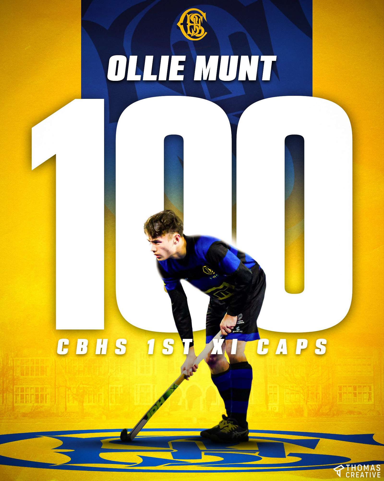 Congratulations to Ollie Munt, who has become the first player to officially record 100 caps for the CBHS 1st XI Hockey team.