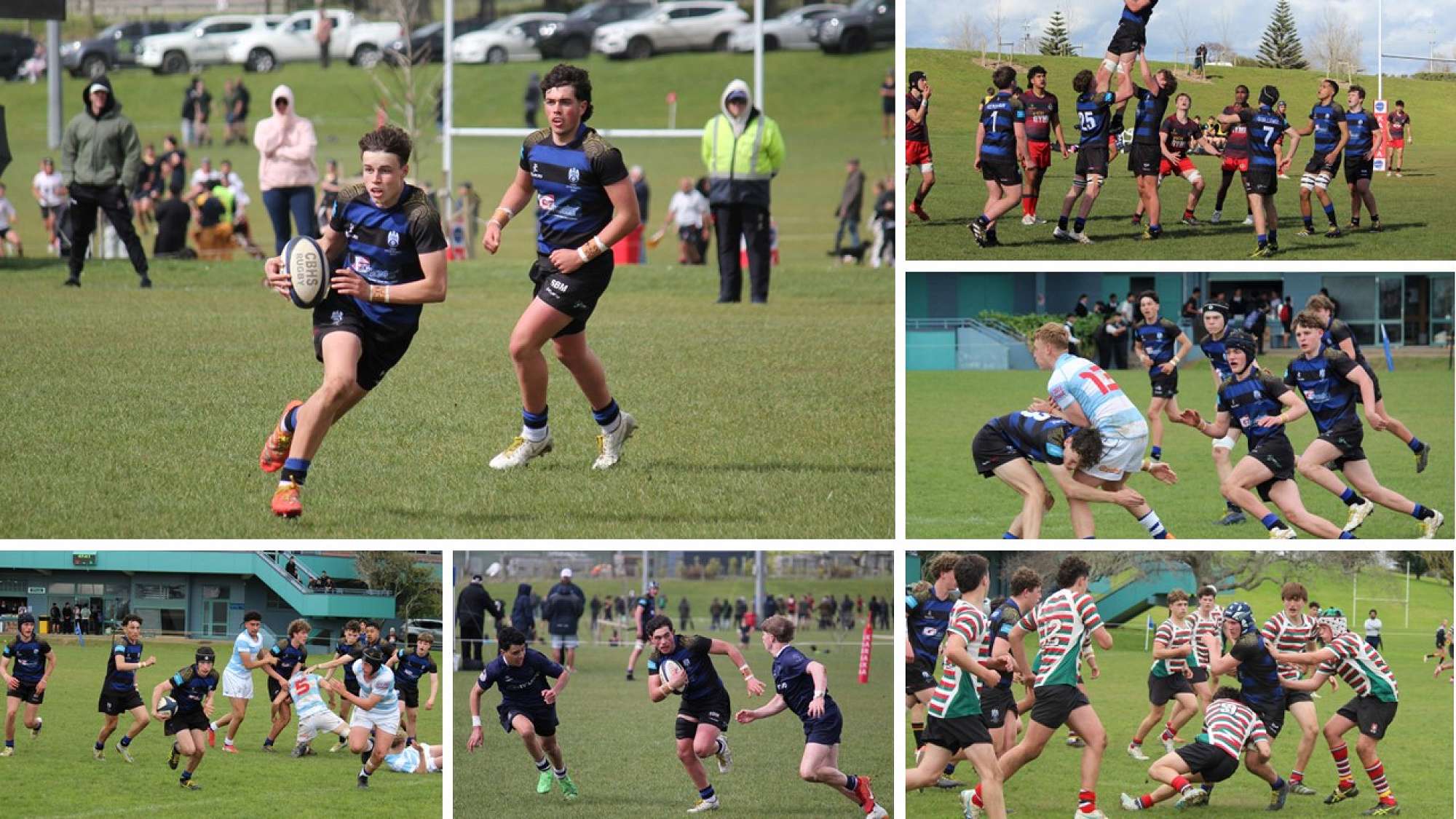 Over the first two days, Christchurch Boys’ High School (CBHS) faced Otago Boys’, Wellington College, and Rotorua Boys’. With a rock-solid defence, CBHS conceded only two tries across all three matches, securing convincing wins: 26–7, 38–0, and 20–5. These results placed them at the top of their pool and into a Quarter Final clash with Westlake Boys’ High School.
