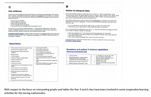 With respect to the focus on interpreting graphs and tables the Year 5 and 6 class have been involved in some cooperative learning activities for this during mathematics.