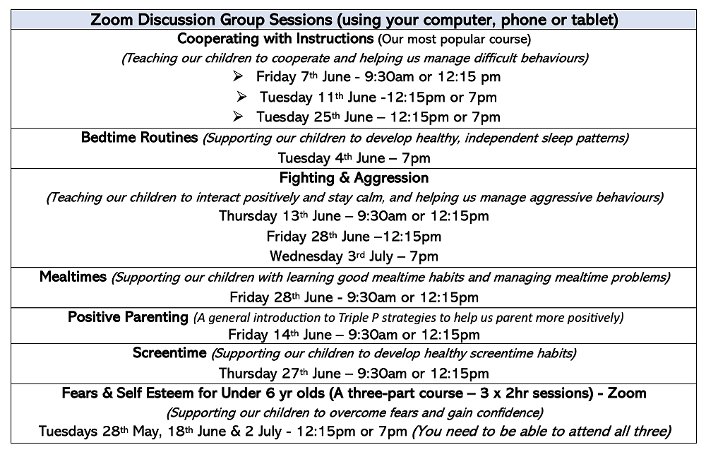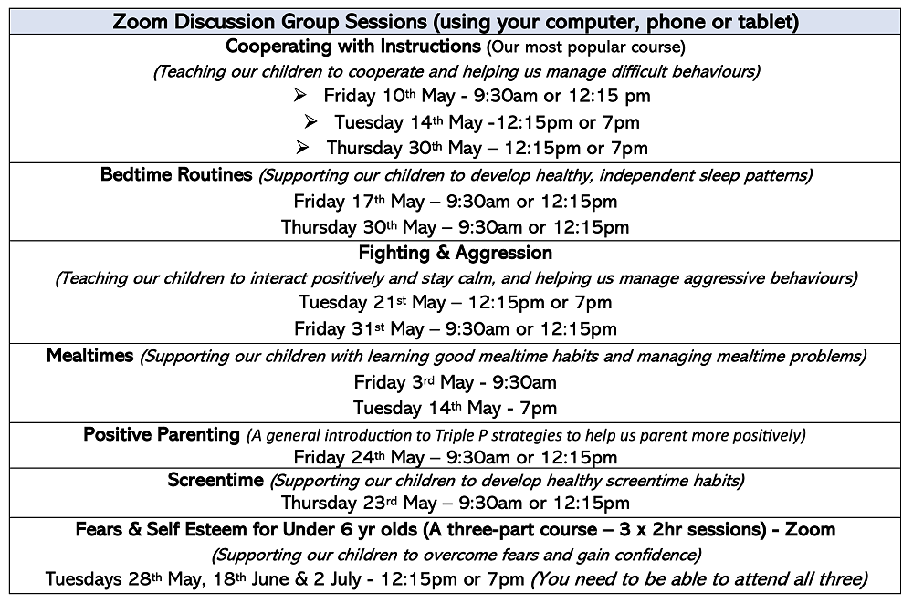 Triple P Positive Parenting is a great course if you are looking for help in your parenting. There are two free courses this term - see below for details: