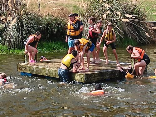 After fun and lunch at Dolamore Park, the top priority when we got to camp was to cool off asap so there was a lot of fun throwing themselves, and each other, into the pond and down the waterslide for a couple of hours. Slides were a feature of Friday too, with the bold and the brave wrapping themselves up and being given a helping hand down the slide by Grant and Debbie while Lilly the dog raced them to the bottom. Somewhere amongst all of that there was a fashion show, an amazing outdoor mind-bending course, a scavenger hunt and endless games of basketball, cricket, and the enormous bouncy pillow (even in the dark!).