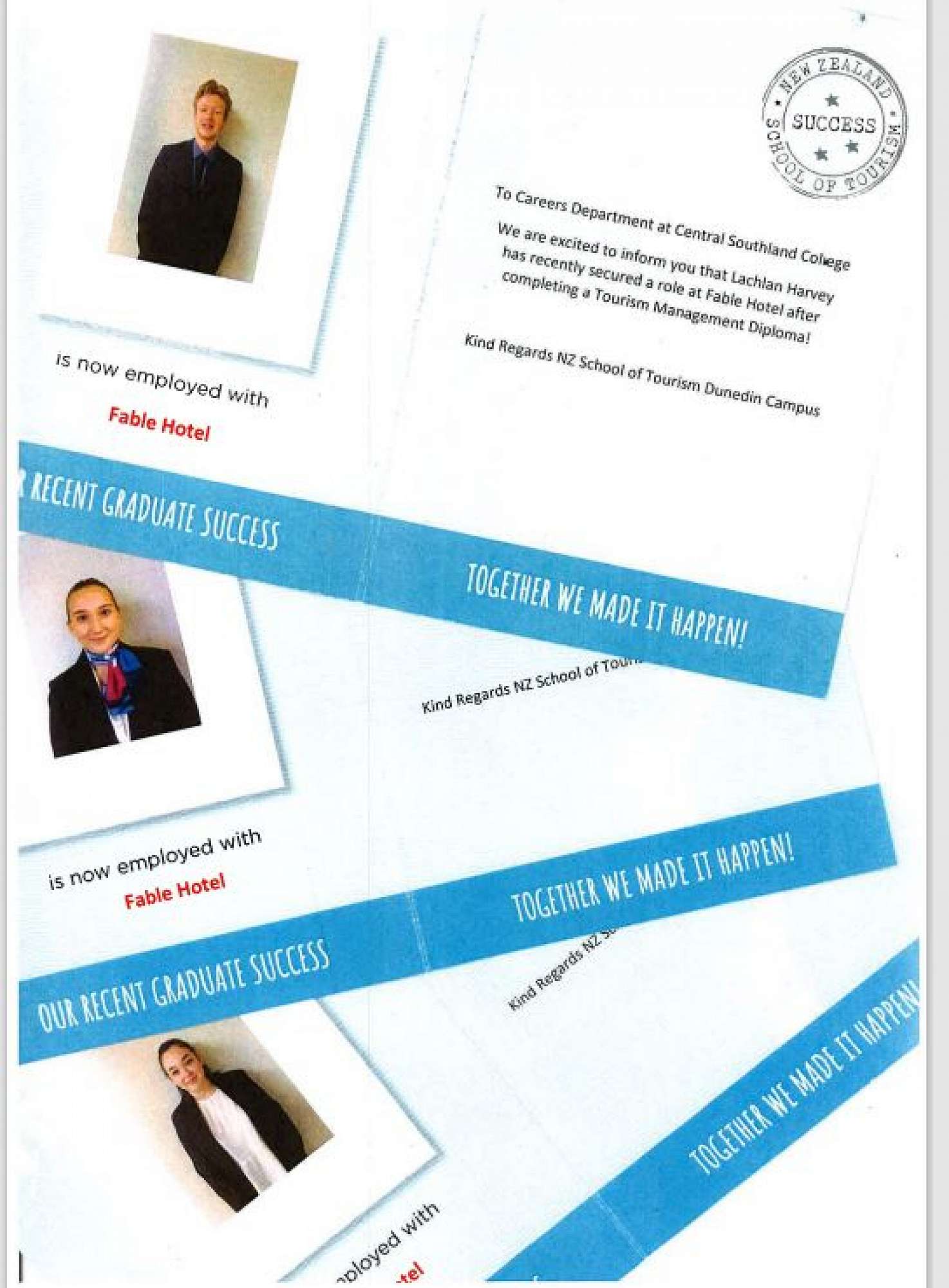 How awesome is this! Three past CSC students have completed a Tourism Management Diploma at the NZ School of Tourism and are now all employed at the Fable Hotel in Dunedin. We love hearing about student successes!