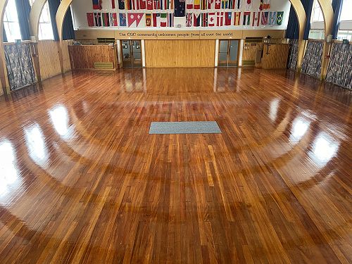 After a significant period of wear, the hall floor has been resurfaced and it looks amazing!
