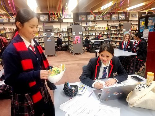 The Librarians spread their care and empathy around the school to provide wellbeing to individuals, families, communities, and organisations. The Library Committee handed out lollipops and ribbons on Friday to share with students.