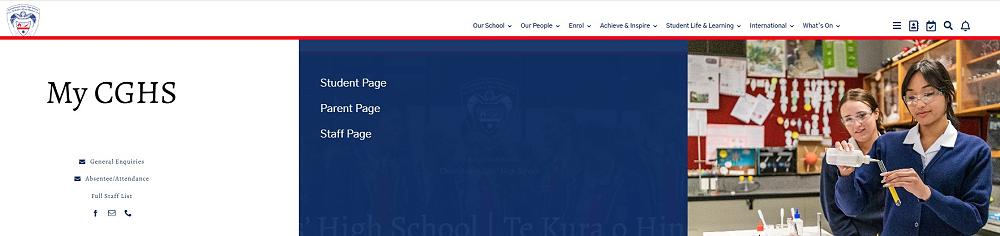 The "My CGHS" menu in the top right of the screen gives you the option to choose the parent page.