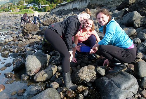 All Year 13 Biology students had the opportunity to venture to the serene seaside of Wainui to carry out practical investigations for their coursework. The secluded rocky shore saw over 100 students flipping rocks and carefully selecting crabs, starfish, and other assorted creatures. Although the morning was spent with buckets in tow and back and forward trecks from the YMCA to the shore, the real work began in the hollowed-out hut with a questionable amount of oxygenated tanks awaiting our newly collected creatures. The tedious logging process is one all students will forever associate with Biology but the laugher, bitter cold and talks of the morsels to be enjoyed in the Little River Cafe made the one night adventure, unlike any other field trip. Many thanks to the students and Biology staff for a great trip in our final year at CGHS.